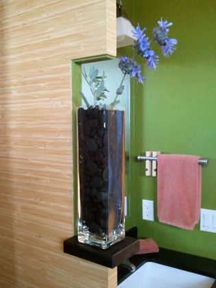 Bamboo plywood, hardened paper counters, a heated Japanese soaking tub,